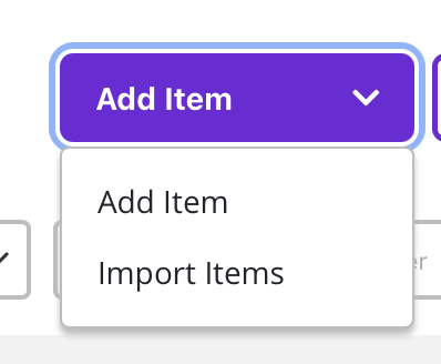 3. Add Item. Click the Add Items button to open the drop down menu. You have the option to add items individually or import a list of items. (See Import Fund a Need Items for more detailed instructions.)