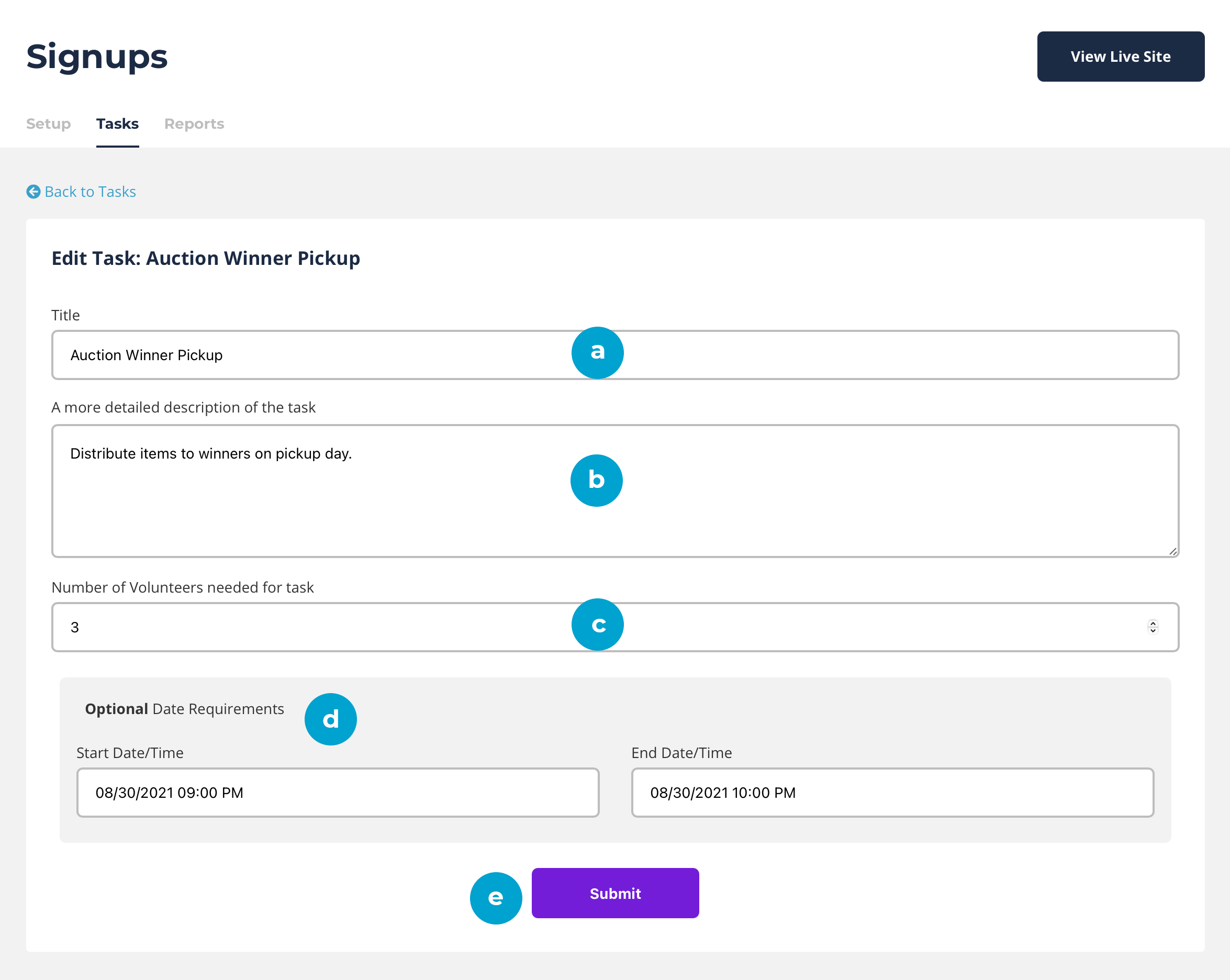 c. Number. How many people do you need for this task? Enter the number of people you'd like to sign up to help with this task.
